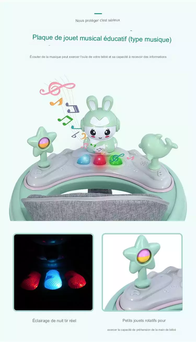 Offrez à votre petit trésor une expérience d’apprentissage ludique et sécurisée avec ce trotteur évolutif ! Confort, amusement et liberté de mouvement réunis dans un seul produit.